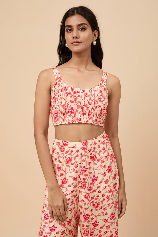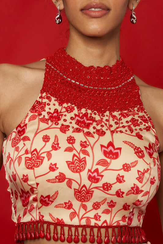 Cream and Red Crop Top Co-ord