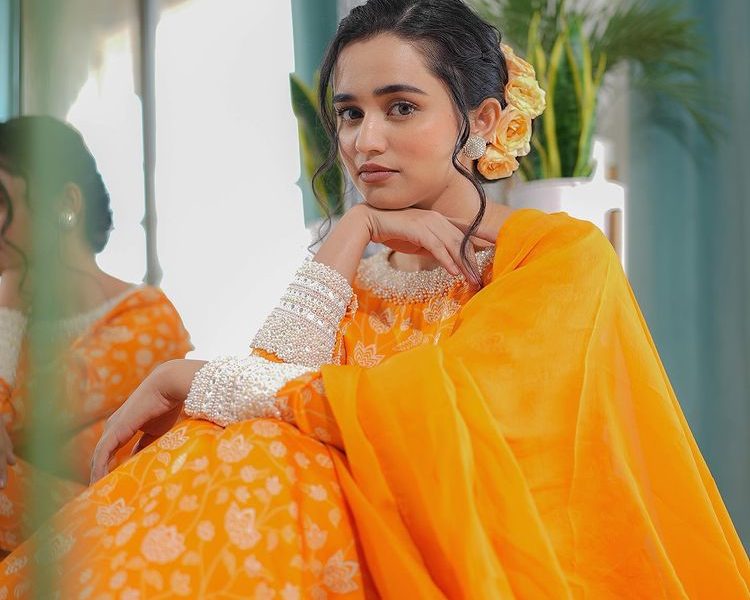 Orange Floral Lehenga